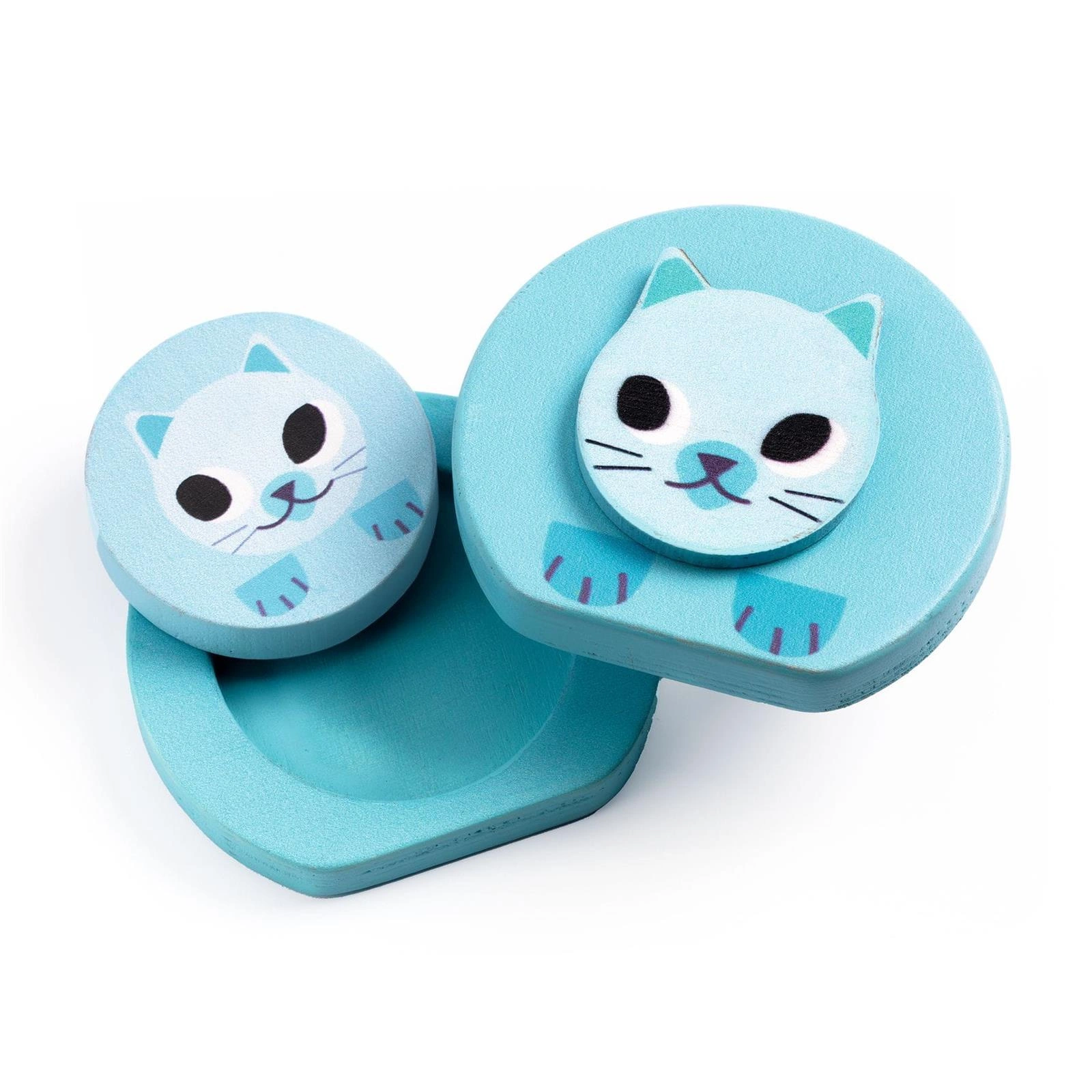 Drewniana magentyczna układanka od 1. roku życia. Należy otworzyć 5 pudełeczek w formie różnych kształtów geometrycznych i z wizerunkiem zwierzątek z farmy. W środku każdego zwierzątka znajduje się jego dziecko w mniejszej wersji. Dzięki magnesom zwierzątka nie przesuwają się. Zabawka wykonana jest zdrewna posiadającego certyfikat FSC®.