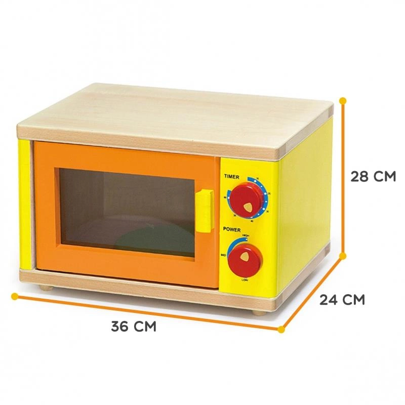 Mikrofalówka Viga Toys wykonana została z wysokiej jakości drewna kauczukowego o zwartej strukturze, powstała z myślą o dzieciach lubiących naśladować zachowania osób dorosłych. Taka drewniana mikrofalówka jest doskonałą zabawką zarówno do przedszkola, jak i do dziecięcego pokoju.