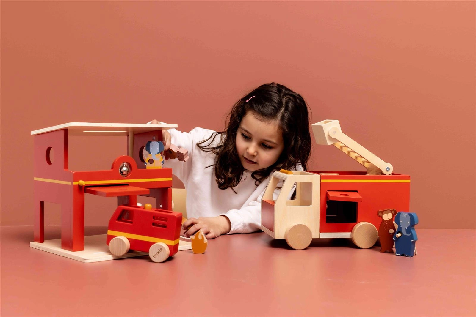 Drewniana remiza stażacka ze zwierzątkami Trixie Baby