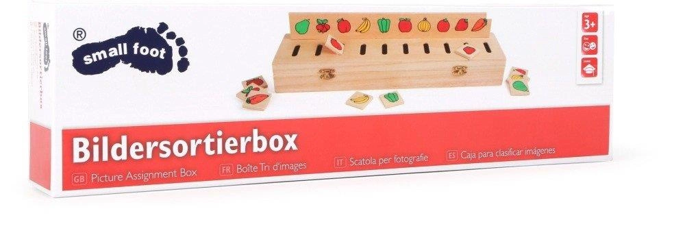 Drewniana skrzyneczka do sortowania obrazków, 6494-small foot, zabawki edukacyjne