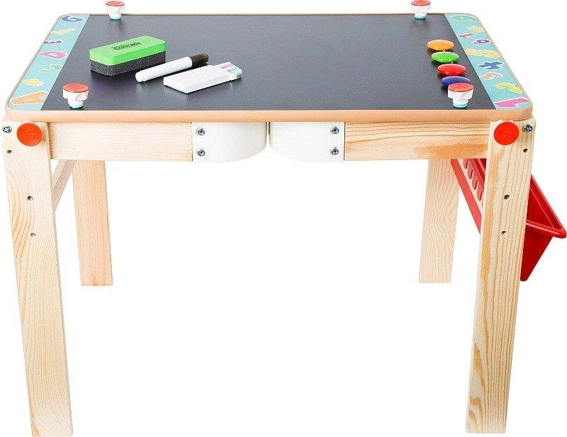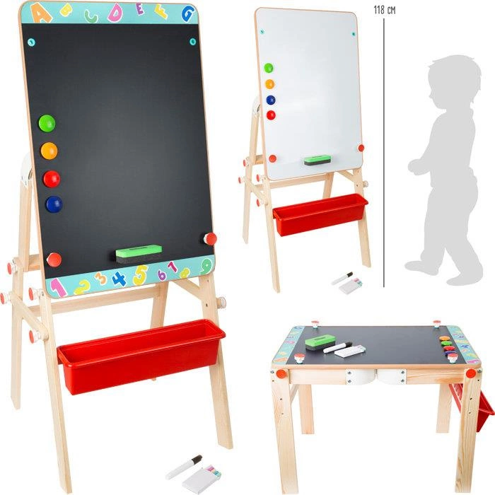Modułowa drewniana tablica dwustronna Moje małe dzieło Small foot to genialny pomysł na prezent dla 4 latka. Za sprawą łatwych w montażu śrub, szybko bez wysiłku możemy stworzyć z niej stolik, który urozmaici zabawę.
