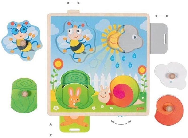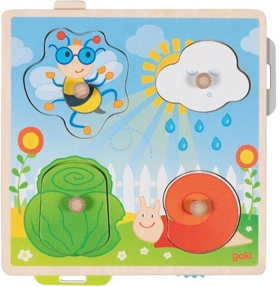 Drewniana układanka interaktywna W ogrodzie Goki łączy w sobie zalety klasycznej dopasowywanki z tablicą akcji!