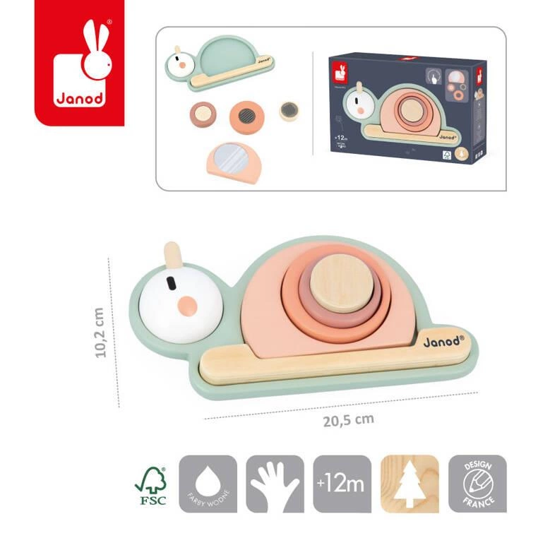 Drewniana układanka sensoryczna Ślimak Sweet Cocoon 12 m +, Janod