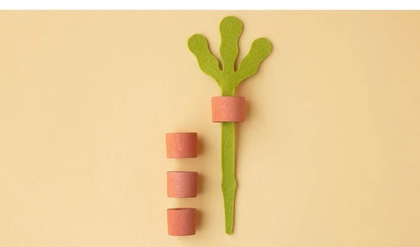 Aby rozpocząć, należy wybrać kawałki warzyw, które planujemy zrobić, zachowując odpowiednią kolejność i kolor. Po wybraniu kawałków można pochwalić się swoimi umiejętnościami, nawlekając je na ich filcowe łodygi.