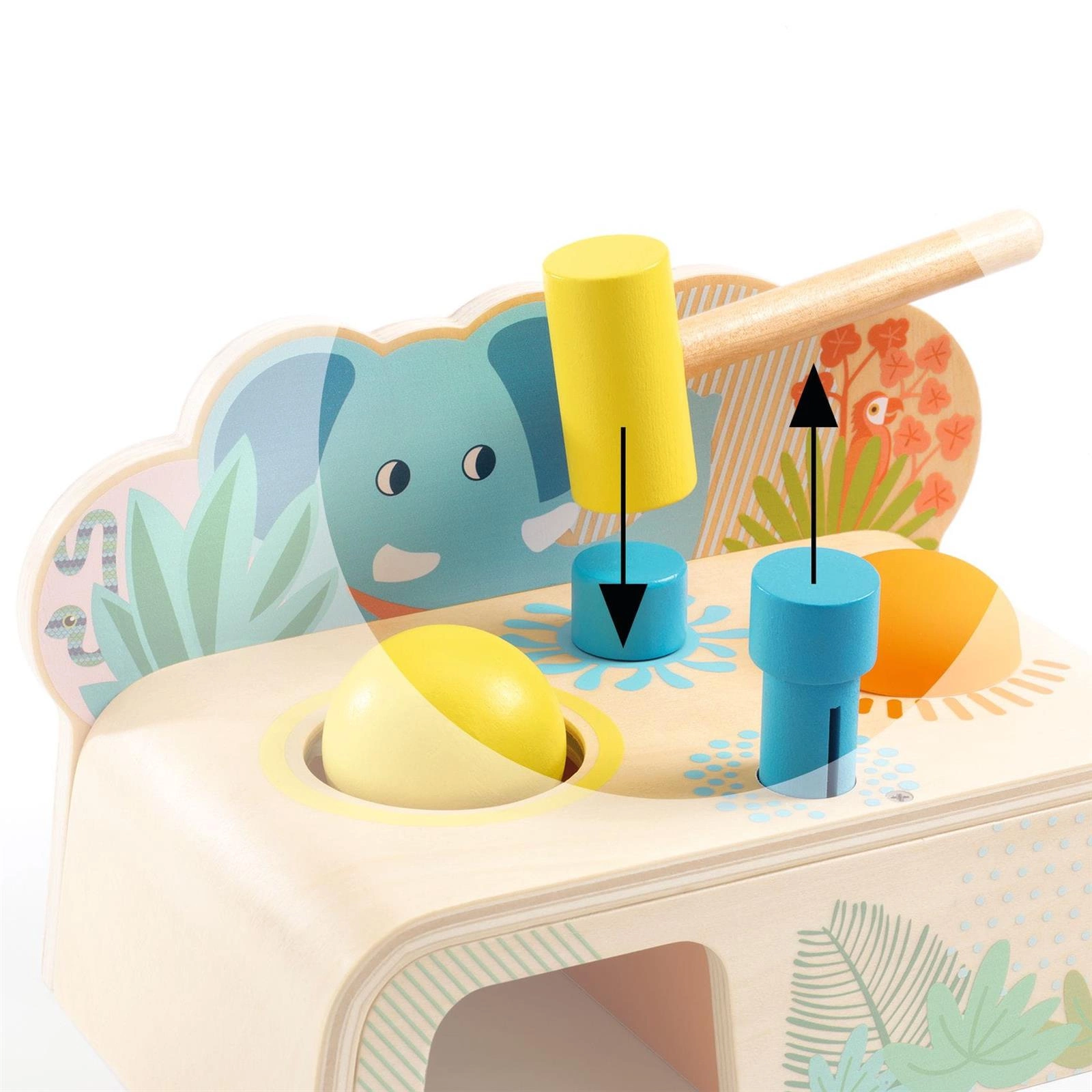 Odkrywanie zależności poprzez uderzanie młotkiem rozwija ciekawość i wyobraźnię dziecka. Zabawka ćwiczy motorykę małą oraz koncentrację.