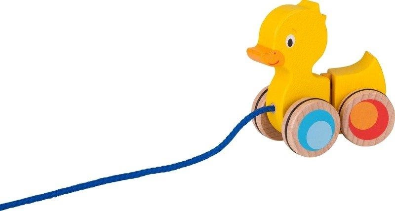 Nasza propozycja to zabawka drewniana do ciągnięcia Kaczątko od Goki, która będzie towarzyszyć naszemu dziecku w każdej chwili odkrywania nowych miejsc. Zwierzątko przy ciągnięciu wykonuje naprzemienny ruch bioderkami, co czyni go zabawnym towarzyszem każdej wycieczki, spaceru czy też wakacji. To zabawka na sznurku, która rozwija w najmłodszych poczucie przywiązania. Wspaniały prezent na roczek, gdy dziecko stawia swoje pierwsze kroczki.