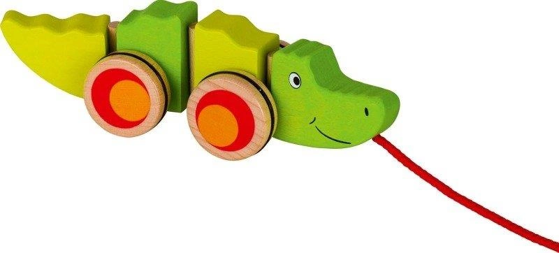 Nasza propozycja to zabawka drewniana do ciągnięcia Krokodylek od Goki, która będzie towarzyszyć naszemu dziecku w każdej chwili odkrywania nowych miejsc. Zwierzątko przy ciągnięciu wykonuje naprzemienny ruch bioderkami, co czyni go zabawnym towarzyszem każdej wycieczki, spaceru czy też wakacji. To zabawka na sznurku, która rozwija w najmłodszych poczucie przywiązania. Wspaniały prezent na roczek, gdy dziecko stawia swoje pierwsze kroczki.