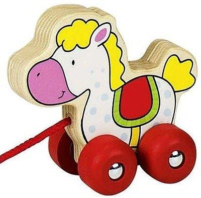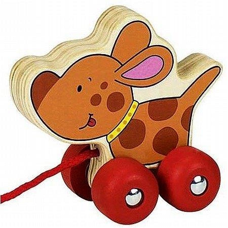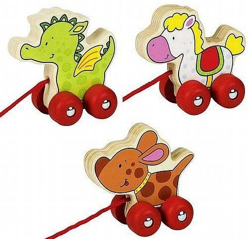 Drewniana zabawka do ciągnięcia na sznurku, zwierzątka