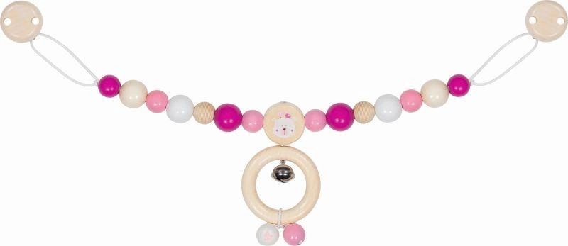 Utrzymana w różach kolorystyka sprawia, że drewniana zawieszka do wózka z klipsami miś polarny Goki Baby będzie odpowiednia przede wszystkim dla dziewczynki.