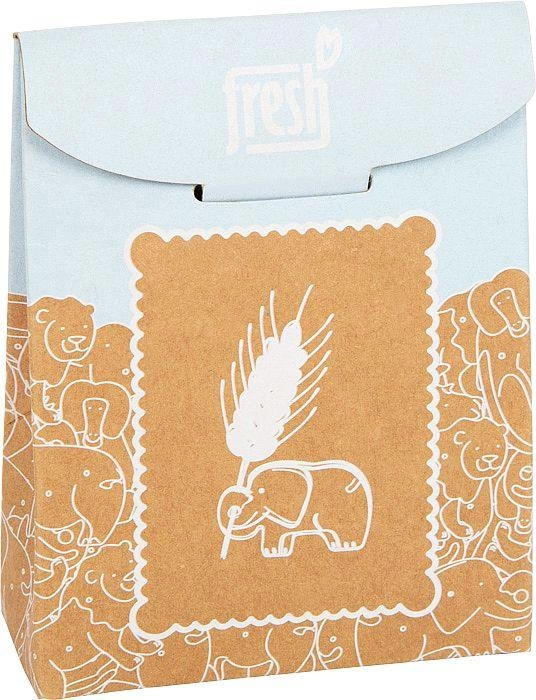 Przechowywanie krakersów może odbywać się w dołączonym, składanym opakowaniu. Wykonano je z nieprzetworzonej tektury, która jest przyjazna dla natury i biodegradowalna.