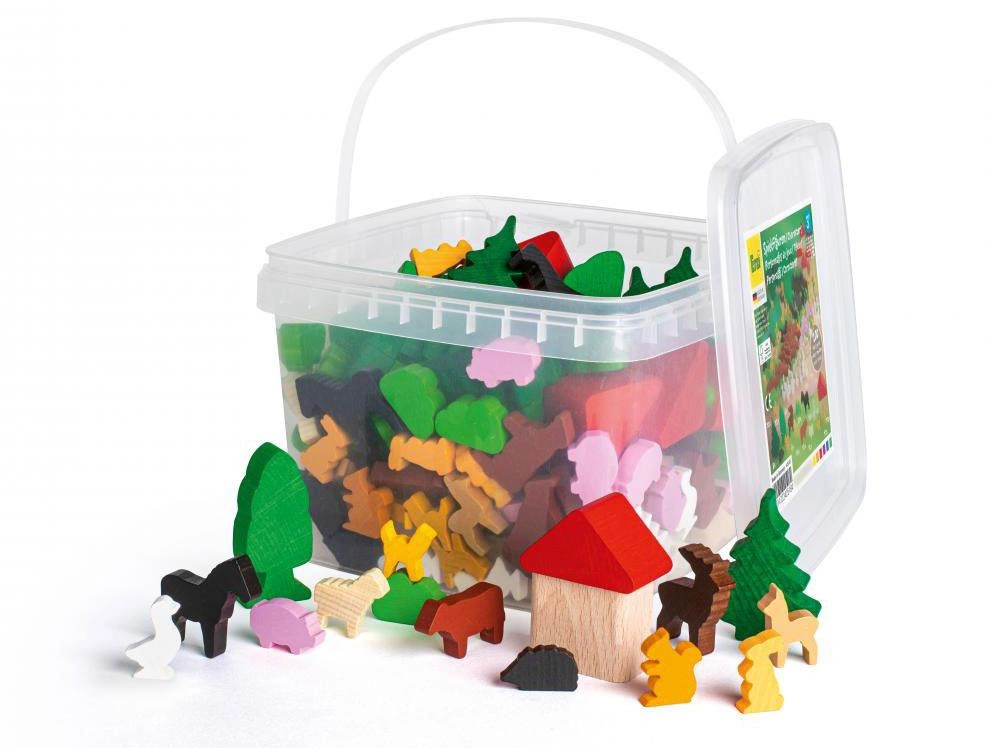 Dziecięca wyobraźnia nie ma granic, dlatego z dużym zestawem figurek marki Erzi maluch może popuścić wodze fantazji i odgrywać wyjątkowe scenki. Zestaw zawiera 200 figurek wykonanych z wysokiej jakości drewna buku. Do ich pomalowania wykorzystano bezpieczne farby. Figurki zapakowane są w praktyczne wiaderko, które ułatwia ich przechowywanie. Figurki do zabawy niemieckiej marki Erzi pozwolą Twojemu dziecku odgrywać scenariusze na farmie, ranczo czy w lesie.