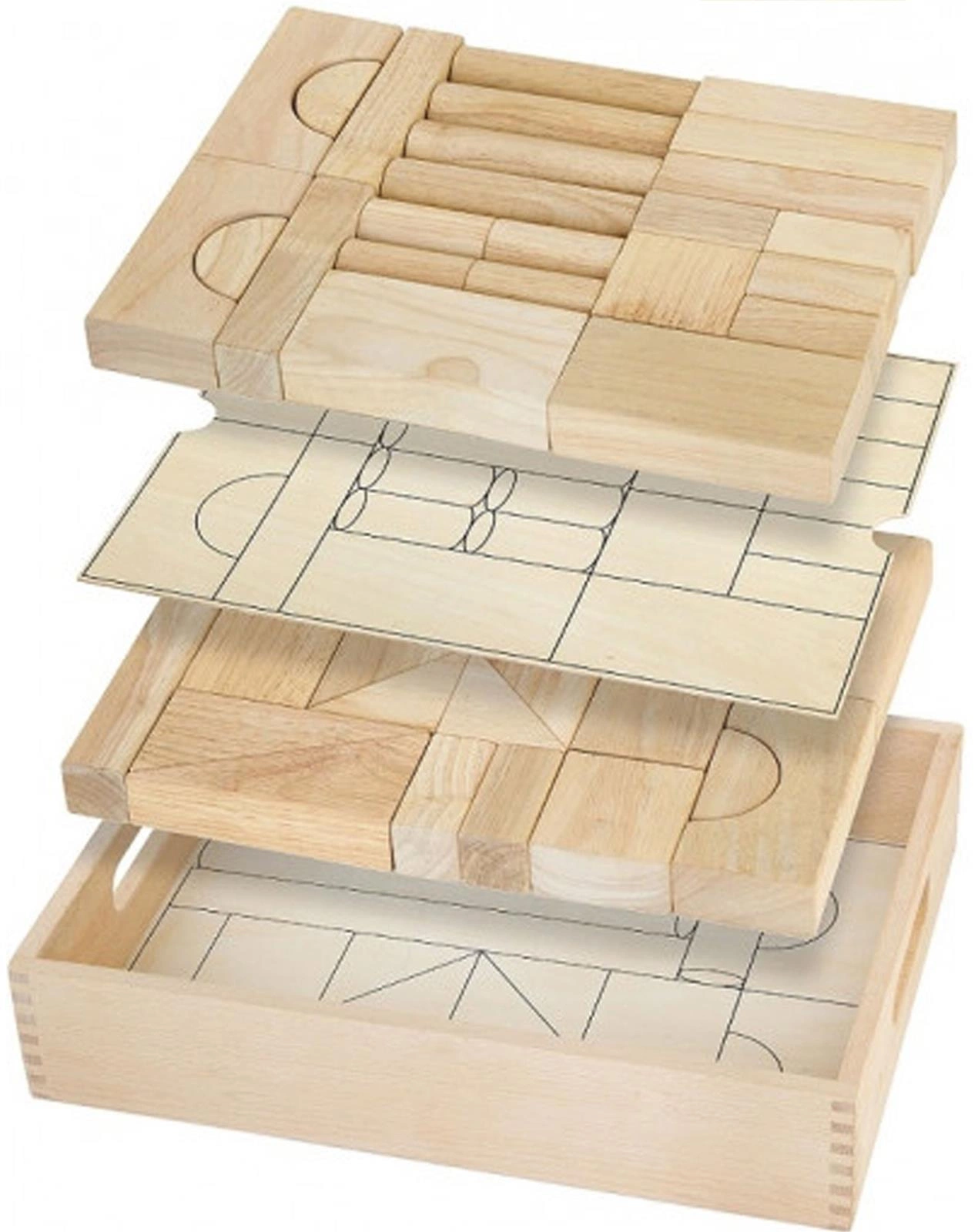 • - zestaw zawiera 46 naturalnych klocków i drewnianą tackę, która ułatwia ich przenoszenie i przechowywanie,