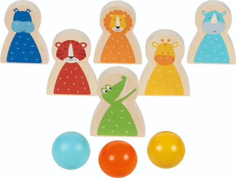 Maluchy uwielbiają aktywnie spędzać czas, zarówno w trakcie zabawy na świeżym powietrzu jak i w zaciszu swoich pokoi. Aby nie zabrakło im inspiracji do zabawy warto zaopatrzyć je w ciekawe gry. Drewniany zestaw marki Goki składa się z sześciu kręgli z wizerunkami zwierząt oraz trzech kul do ich zbicia. Zręcznościowe gry dla dzieci angażują wiele zmysłów i dostarczają rozrywki będącej jednocześnie świetnym treningiem koordynacji i zręczności.
