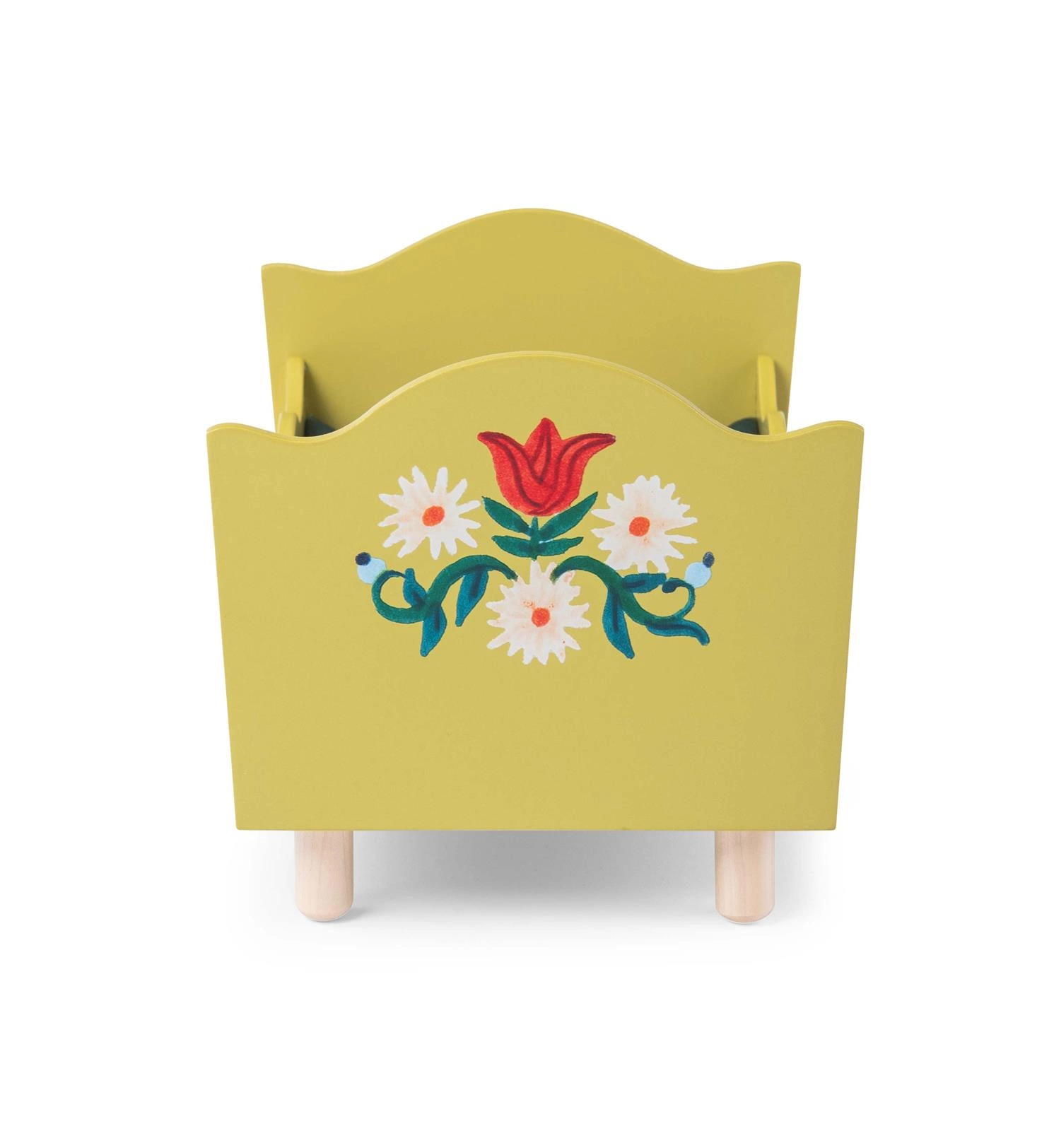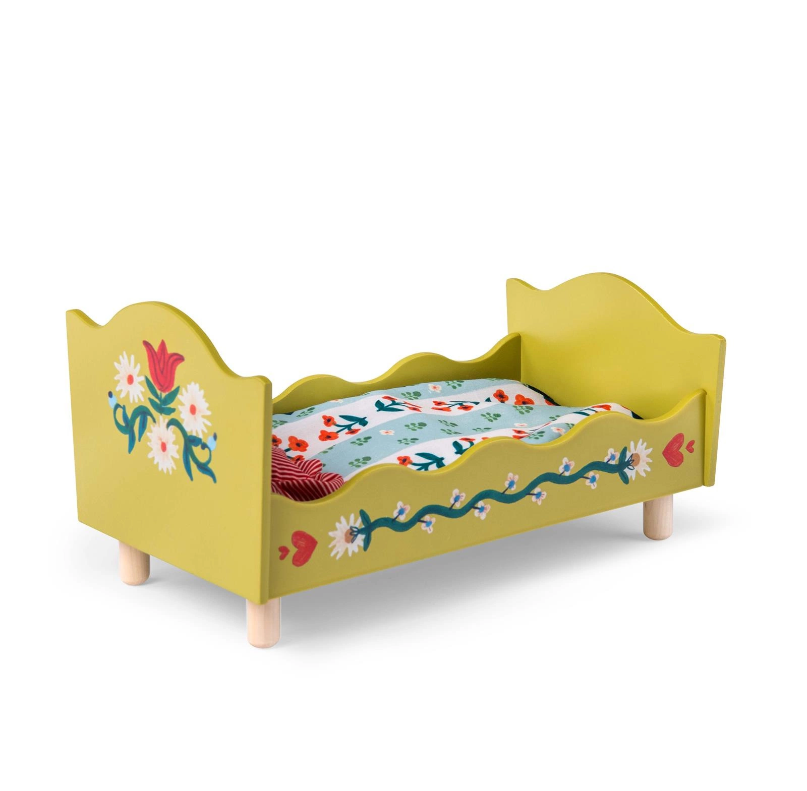 Drewniane łóżeczko zaprojektowane specjalnie dla misiów z kolekcji Les Minouchkas. Pięknie zdobione uroczymi kwiatuszkami w stylu retro. W zestawie znajduje się poduszeczka w biało-czerwone drobne paski z falbanką oraz wzorzysta kołderka.