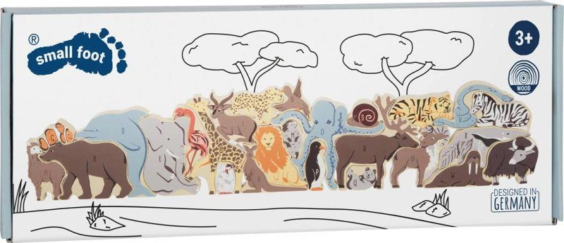 Drewniane puzzle edukacyjne alfabet zwierzęta świata Small Foot to kolorowa układanka przestrzenna złożona z 26 pięknie zaprojektowanych elementów w kształcie mieszkańców różnych kontynentów.