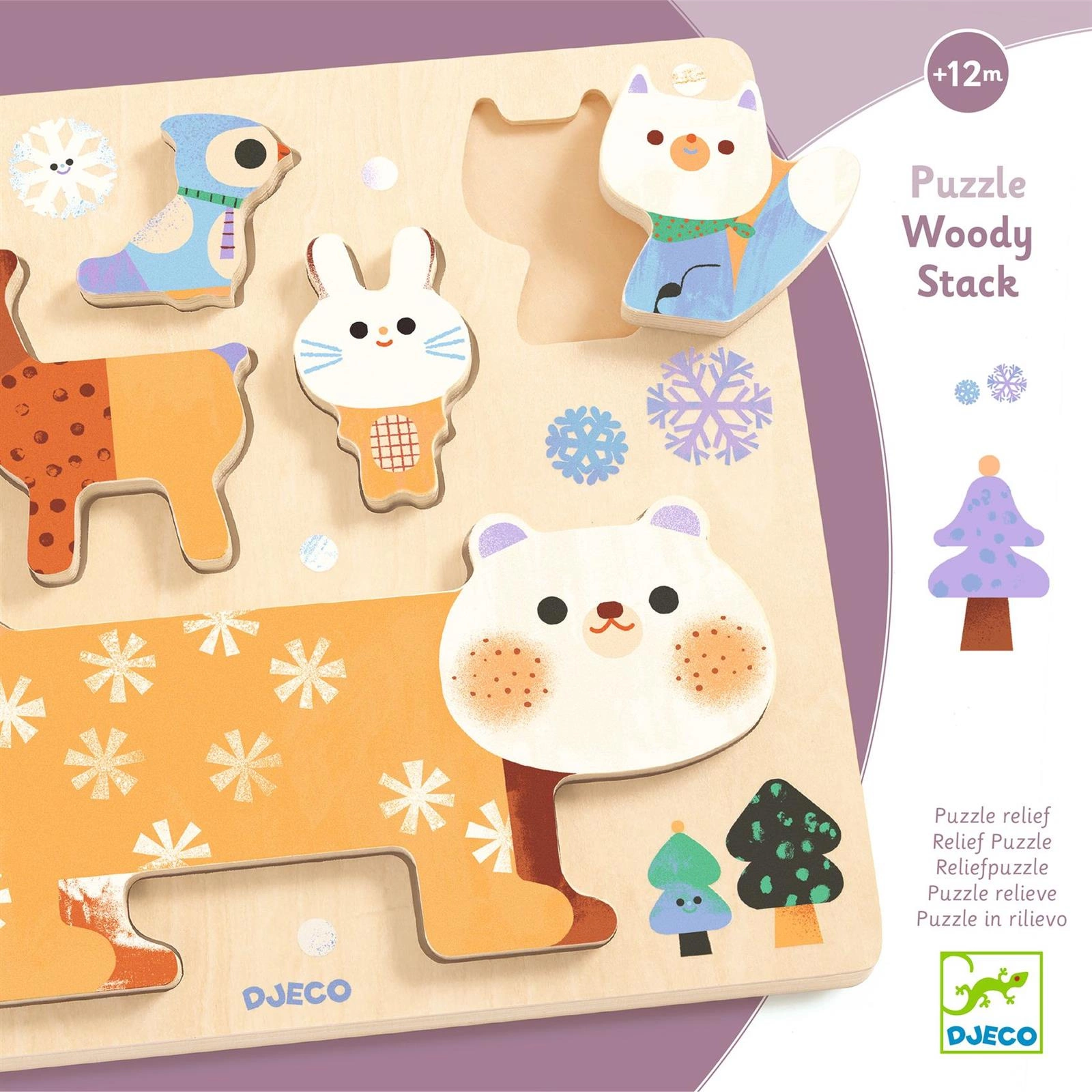 Drewniane puzzle ZWIERZĄTKA ZIMĄ  DJ01090