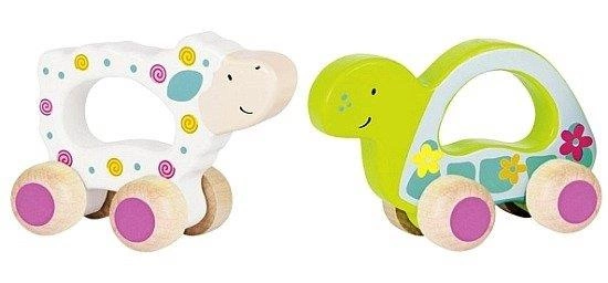 Drewniane zwierzątka do rączki w dwóch kolorach.