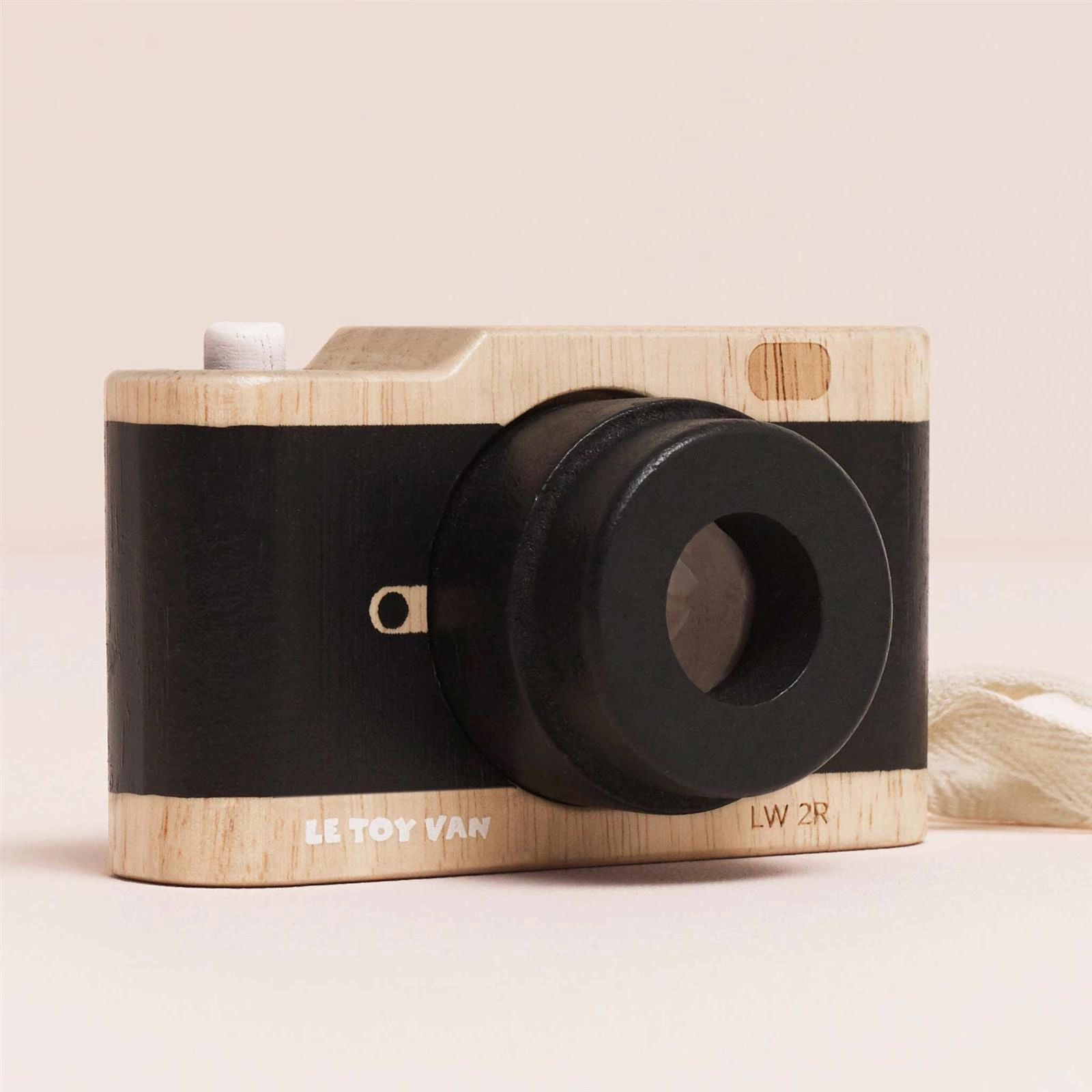 Drewniany aparat fotograficzny retro z kalejdoskopem, zabawka, Le Toy Van
