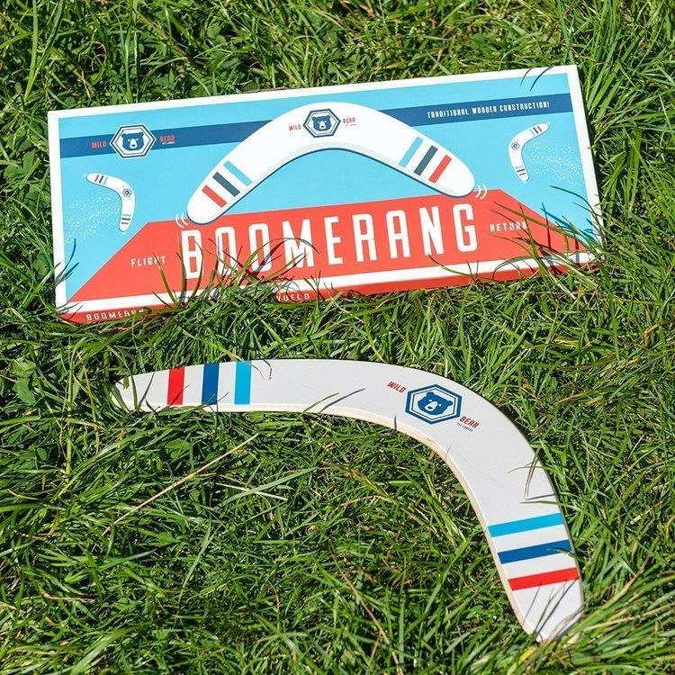 Drewniany bumerang zabawka w stylu retro idealna podczas wakacji.