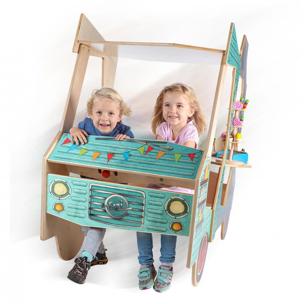 Drewniana furgonetka do zabawy w food truck to propozycja marki Erzi do zabawy w odgrywanie ról. Przestronne wnętrze pojazdu pozwala na jednoczesną zabawę kilku dzieciom. Food Truck wykonany został z wysokiej jakości drewna buku oraz sklejki brzozowej, które zostały polakierowane.