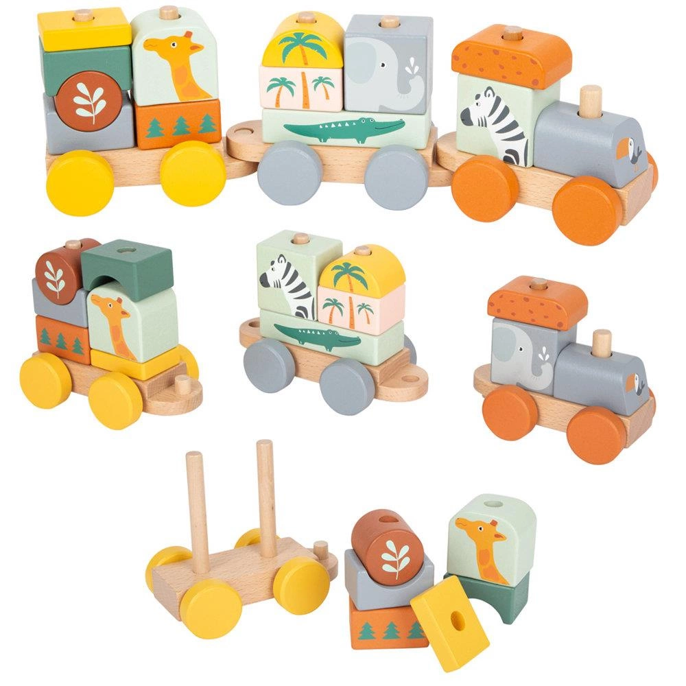 Drewniany pociąg nakładanka Safari 11698- Small Foot, pojazdy dla dzieci