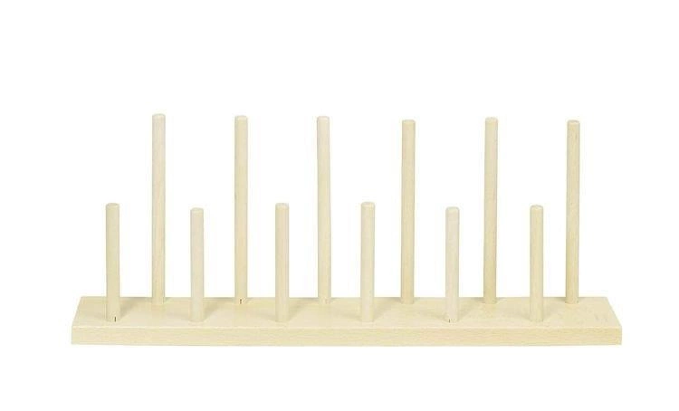 Wymiary drewnianego stojaka na 12 pacynek na palec Goki: 40 x 1,5 x 7 cm