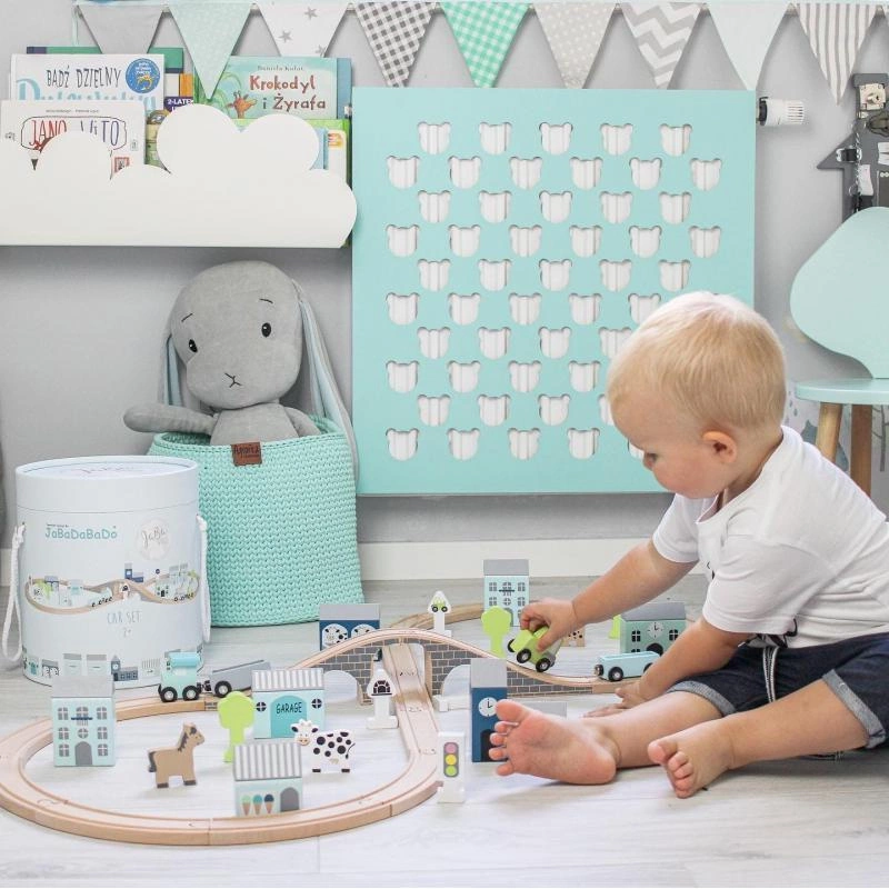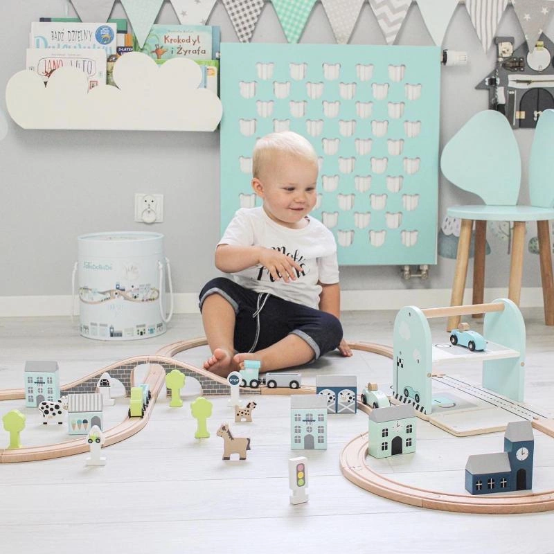 Drewniany tor samochodowy w uroczej pastelowo- niebieskiej kolorystyce, to niezwykle edukacyjna klasyczna zabawka, znana od lat, tym razem w nowoczesnej wersji. Stwórz swoje własne różowe królestwo dla aut, projektujac dla nich otoczenie.