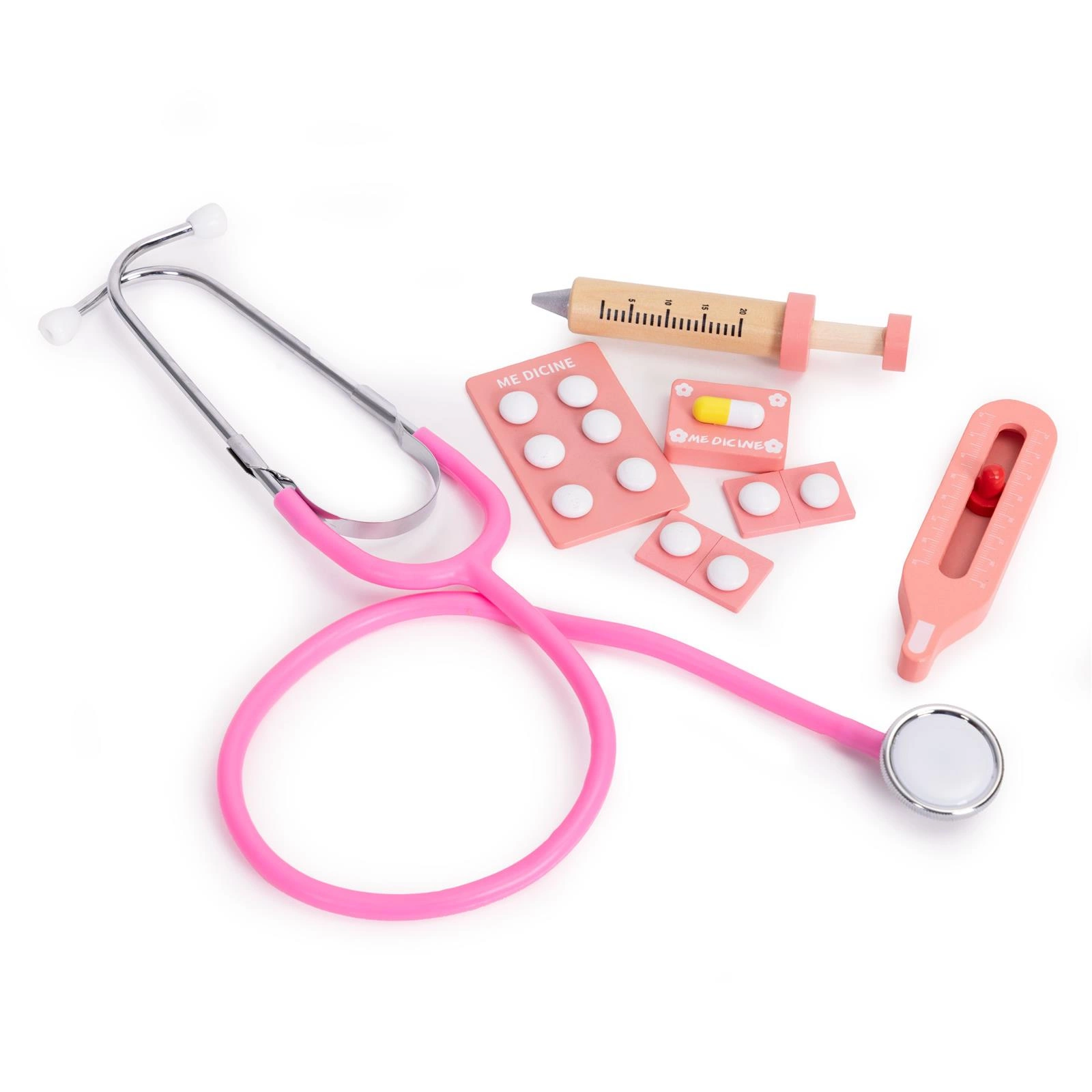 Elementy takie jak stetoskop, termometr, strzykawka oraz leki w blistrach umożliwiają dzieciom wcielanie się w rolę lekarza i przeprowadzanie „badań” swoich pacjentów. Dzięki realistycznemu wyglądowi przyrządów maluch rozwija zdolności komunikacyjne, ćwiczy koordynację ruchową i uczy się troski o innych. Tego typu zabawa to świetna okazja do poznania podstawowych narzędzi medycznych w bezpieczny i przystępny sposób.