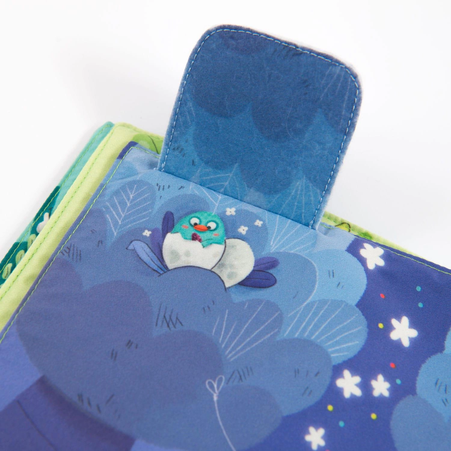 Książeczka zawiera również różne szeleszczące czy ruchome elementy, a na niektórych stronach znajduje się kieszonka-gniazdko do schowania ćwierkającego ptaszka, aby towarzyszył dziecku w aktywności na każdej ze stron.