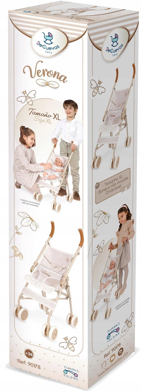 Każda kolekcja lalek staje się atrakcyjniejsza i zachęca do aktywnej zabawy w domu i na świeżym powietrzu jeśli wzbogacimy ją o oryginalne i funkcjonalne akcesoria. Stylowo zaprojektowany, duży wózek dla lalki dodatkowo dodaje niepowtarzalny akcent wnętrzu pokoju dziecięcego. Kolekcja Verona znanej hiszpańskiej marki DeCuevas została zainspirowana Weroną, kojarzoną z historią miłosną z „Romeo i Julia” Williama Szekspira.  Wyróżnia się delikatnymi odcieniami beżu i brązu. wiosennymi detalami, takimi jak kwiaty i pszczółki, a także subtelnymi i uniwersalnymi zdobieniami. Dziecko może zabrać lalę o wysokości do 52 cm na spacer lub na wycieczkę. Lekki, składany model jest łatwy w transporcie i wygodny w użytkowaniu. Polecamy maluchom w wieku od 3 lat.