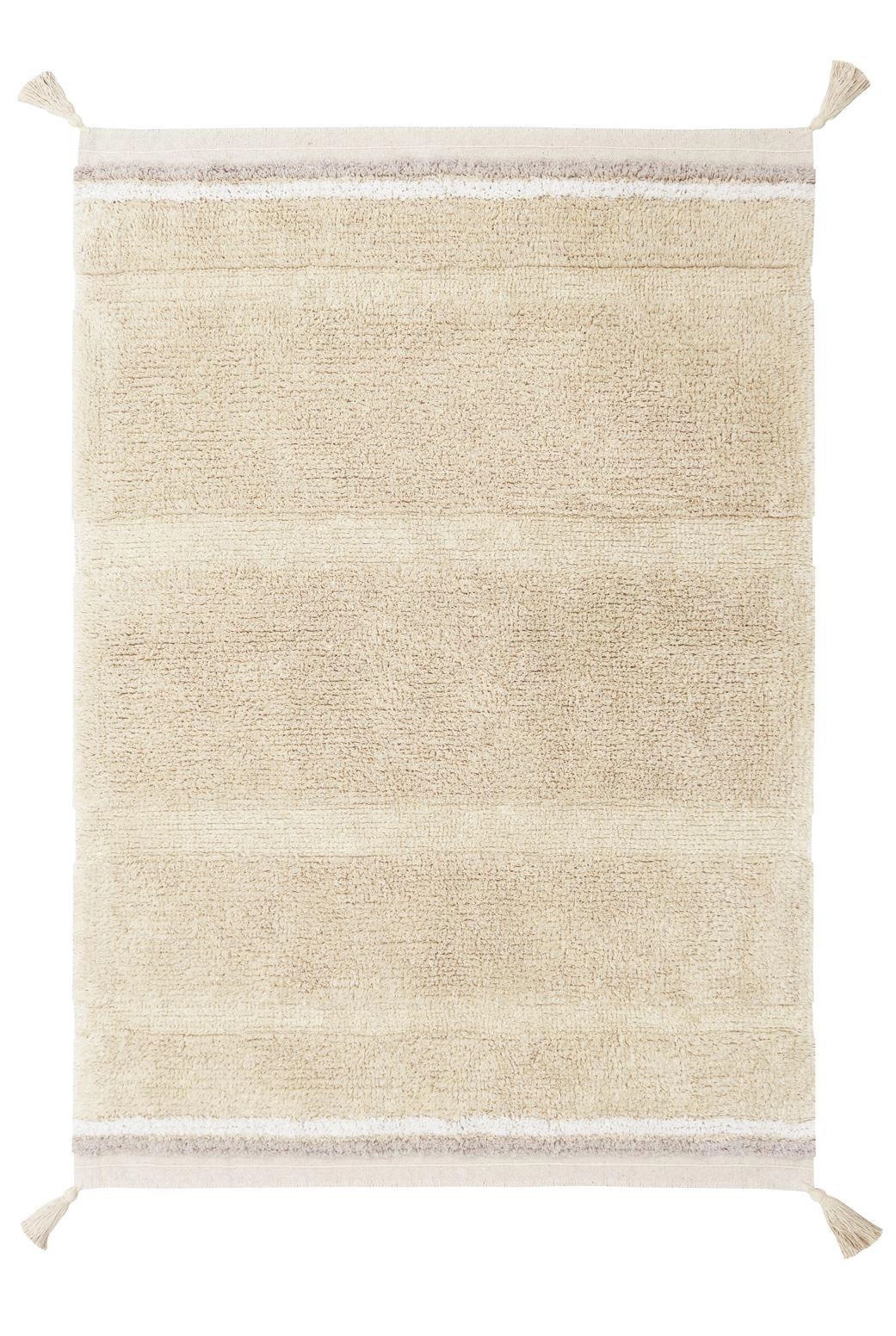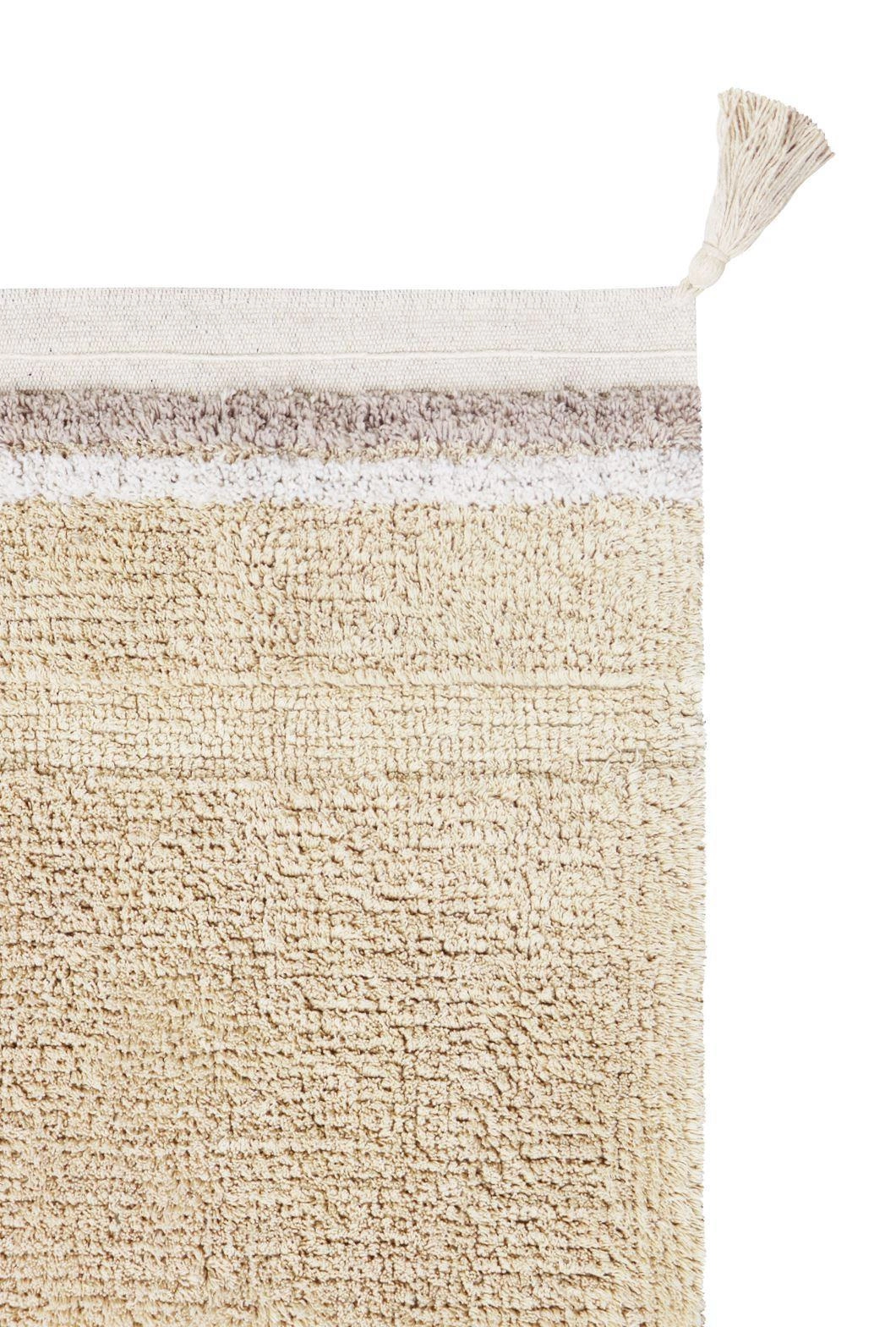 Połącz go z różnymi elementami z naszej kolekcji Fantasy Garden, aby uzyskać tematyczny wystrój pokoju dziecięcego lub użyj go samodzielnie w pozostałej części domu, ponieważ dzięki delikatnym, neutralnym kolorom łatwo wkomponuje się w każdą przestrzeń. Ten bawełniany dywan do prania w pralce jest dostępny w trzech wersjach kolorystycznych, od naturalnej beżowej niefarbowanej bawełny po rumiany róż i złocistożółty. Możesz wybierać spośród różnych rozmiarów i zobaczyć, który najlepiej pasuje do Twojej przestrzeni. Projekt ma jednobarwną powierzchnię z subtelnie zmieniającą się wysokością runa, która nadaje mu prążkowaną teksturę. Krawędzie wykończone są gołym płótnem z kontrastowymi haftowanymi paskami i frędzlami na każdym rogu.