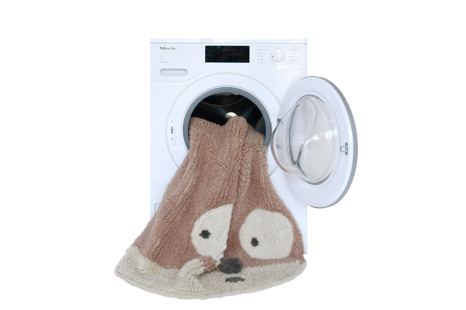 Prać osobno w pralce (pojemność 9 kg lub więcej) na cyklu dla tkanin delikatnych w 30ºC, bez wybielacza.