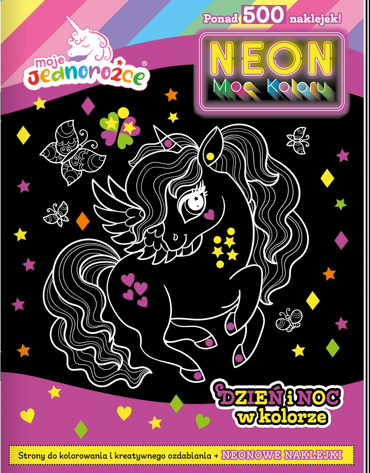 Moje Jednorożce. Neon moc koloru. Książka z obrazkami i z ponad 500 neonowymi naklejkami do tworzenia wyjątkowych, kreatywnych prac w środku strony do kolorowania i kreatywnego ozdabiania. Każda strona to nowa przygoda z magicznymi jednorozcami! Twórz wyjątkowe i kreatywne prace! Koloruj bohaterów i wyklejaj strony neonowymi naklejkami. Efekt końcowy cię zaskoczy!