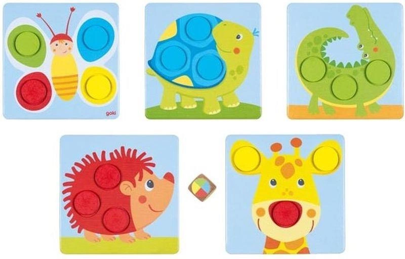 Zabawa edukacyjną grą dla dzieci sortowanie kolorów rozpoczyna się od rzucenia kostką. Zamiast tradycyjnych "oczek" kostka przedstawia kolory, które zawodnik będzie musiał dopasować. Gdy wypadnie konkretny kolor, smyk wybiera owalny klocek odpowiadający pod względem barwy temu, co widzi na kostce. Element należy dopasować do odpowiedniego otworu na tabliczce z przyjazną najmłodszym grafiką ze zwierzętami.