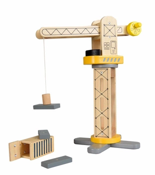 Wielki drewniany dźwig z magnesem do transportowania kontenerów z jednego krańca budowy na drugi. Zabawka umożlwi dziecku odkrycie tajemnic budowy oraz dostarczy wielu godzin wspaniałej zabawy. Wymiary: 19 X 28 X 34 cm