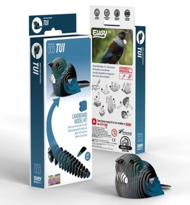 Eugy to unikalne ekologiczne układanki 3D, stworzone w Nowej Zelandii. Wykonane z recyklingowanego kartonu i pomalowane bezpieczną farbą na bazie ryżu, stanowią idealną zabawkę dla miłośników przyrody.