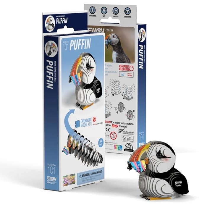 Eugy to wyjątkowe układanki zaprojektowane w Nowej Zelandii, wykonane z ekologicznego kartonu z recyklingu i farby na bazie ryżu. Każdy zestaw zawiera 31 ponumerowanych elementów, oczka, nietoksyczny klej oraz instrukcję, dzięki której możesz stworzyć figurkę uroczego ptaka. Odkryj całą serię zwierząt, ptaków, dinozaurów i innych niesamowitych modeli. Idealne dla dzieci od 6 roku życia.