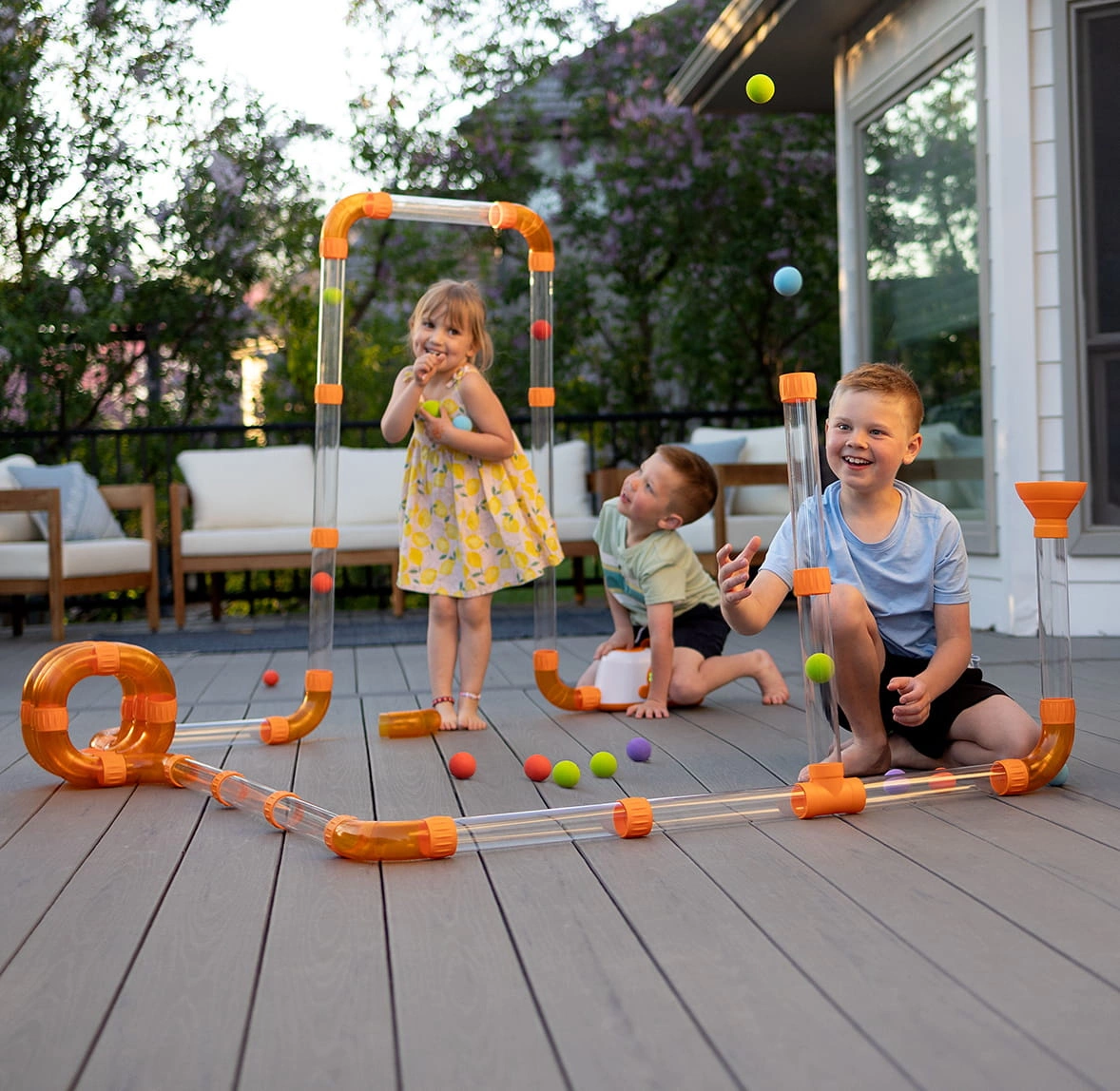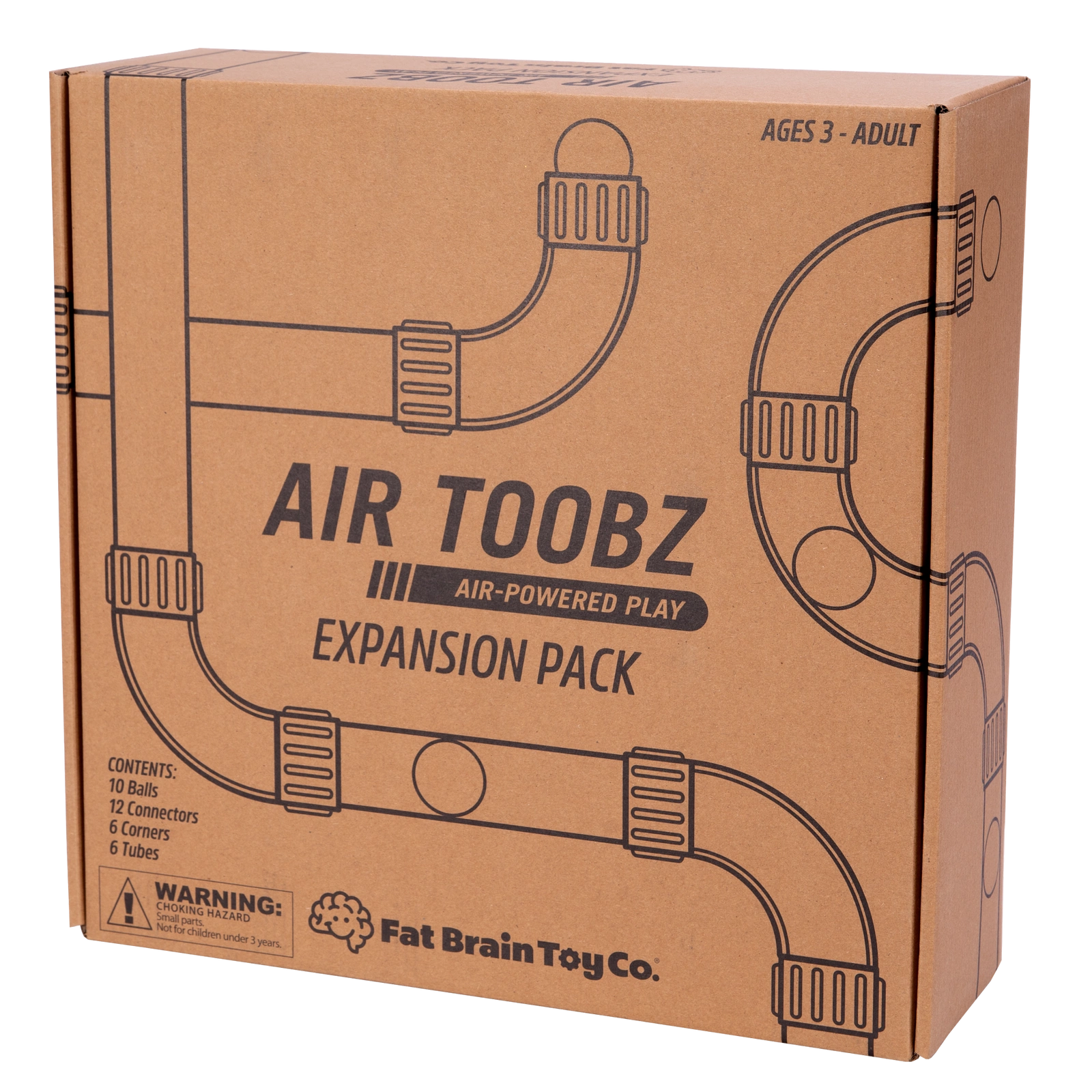 Air Toobz to bezpieczna dla dzieci dmuchawa, która wyrzuca piankowe kulki w labirynt rurek, który ułożyło dziecko. Rurki i łączniki można połączyć w dowolny sposób. Dmuchawa posiada prosty przycisk włączania/wyłączania i duże pokrętło ze wskaźnikami LED do regulacji mocy przepływu powietrza.