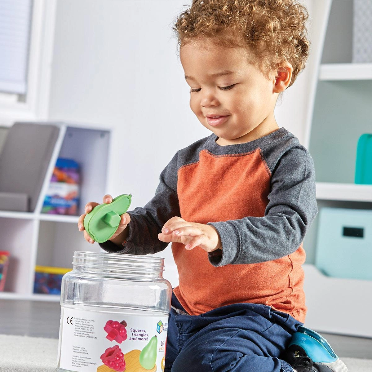 Pomagają małym rączkom rozwijać niezbędną koordynację i umiejętności motoryczne we wczesnym dzieciństwie. Manipulowanie nimi wzmacnia mięśnie palców i dłoni. Wewnątrz każdego z tych owoców znajdują się kołeczki o różnych kształtach. Owoce rozwijają umiejętności rozpoznawania kolorów, tworzenia i sortowania kształtów podczas każdej zabawy!