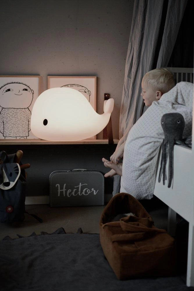 Poznaj Christiana! Lampa wieloryb, która będzie piękną dekoracją w pokoju dziecka. Jest bardzo wytrzymała, dzieci mogą na niej nawet usiąść. Delikatne, ciepłe światło dodaje przytulności w pokoju dziecięcym, a moc natężenia można regulować. Christian zapakowany jest w piękne pudełko, wprost idealnie na prezent.