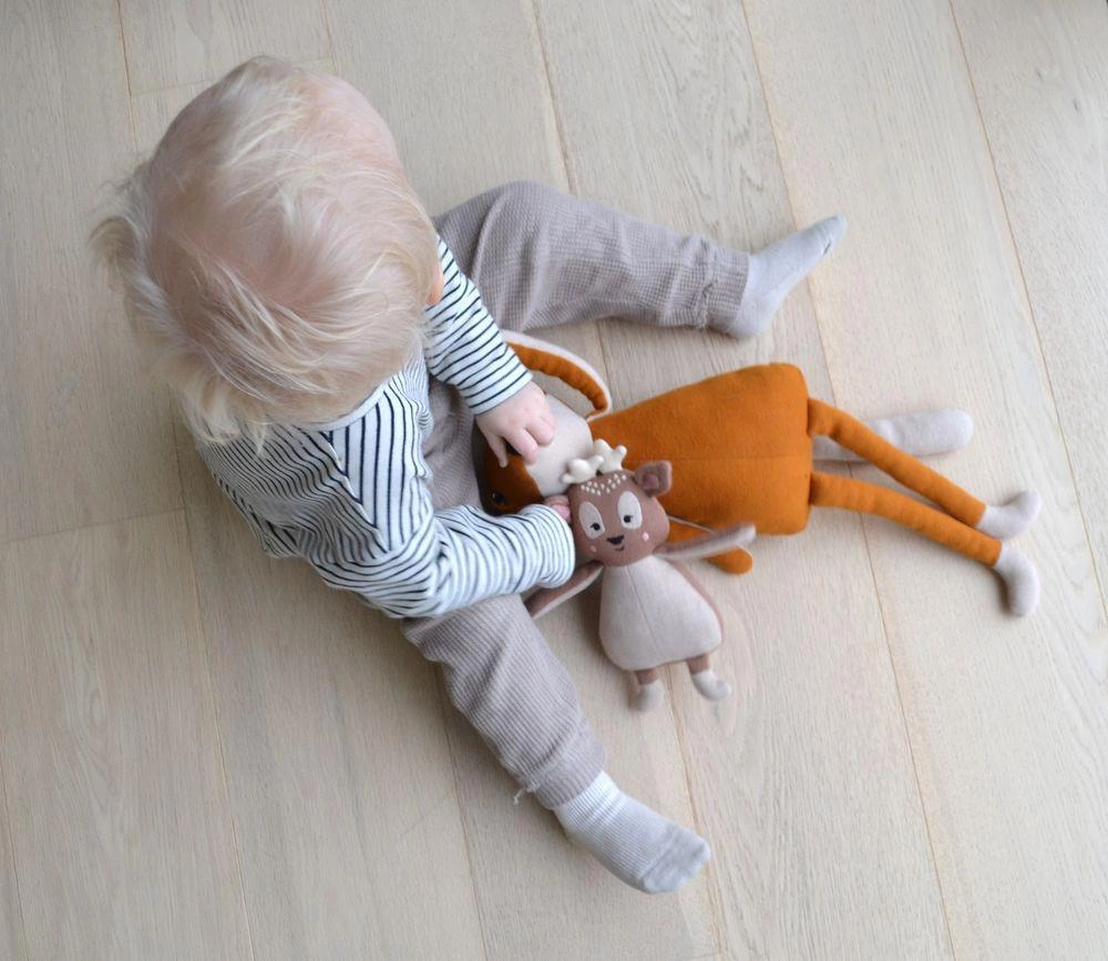 Urocza, ręcznie robiona na drutach przytulanka jelonek Bea, powstała z inspiracji piękną, skandynawską naturą. Jelonek wykonany jest w 100% z bawełny organicznej, a jego wypełnienie to w 100% recyklingowany poliester. Jelonek będzie idealnym pomysłem na prezent zarówno dla chłopca, jak i dla dziewczynki.