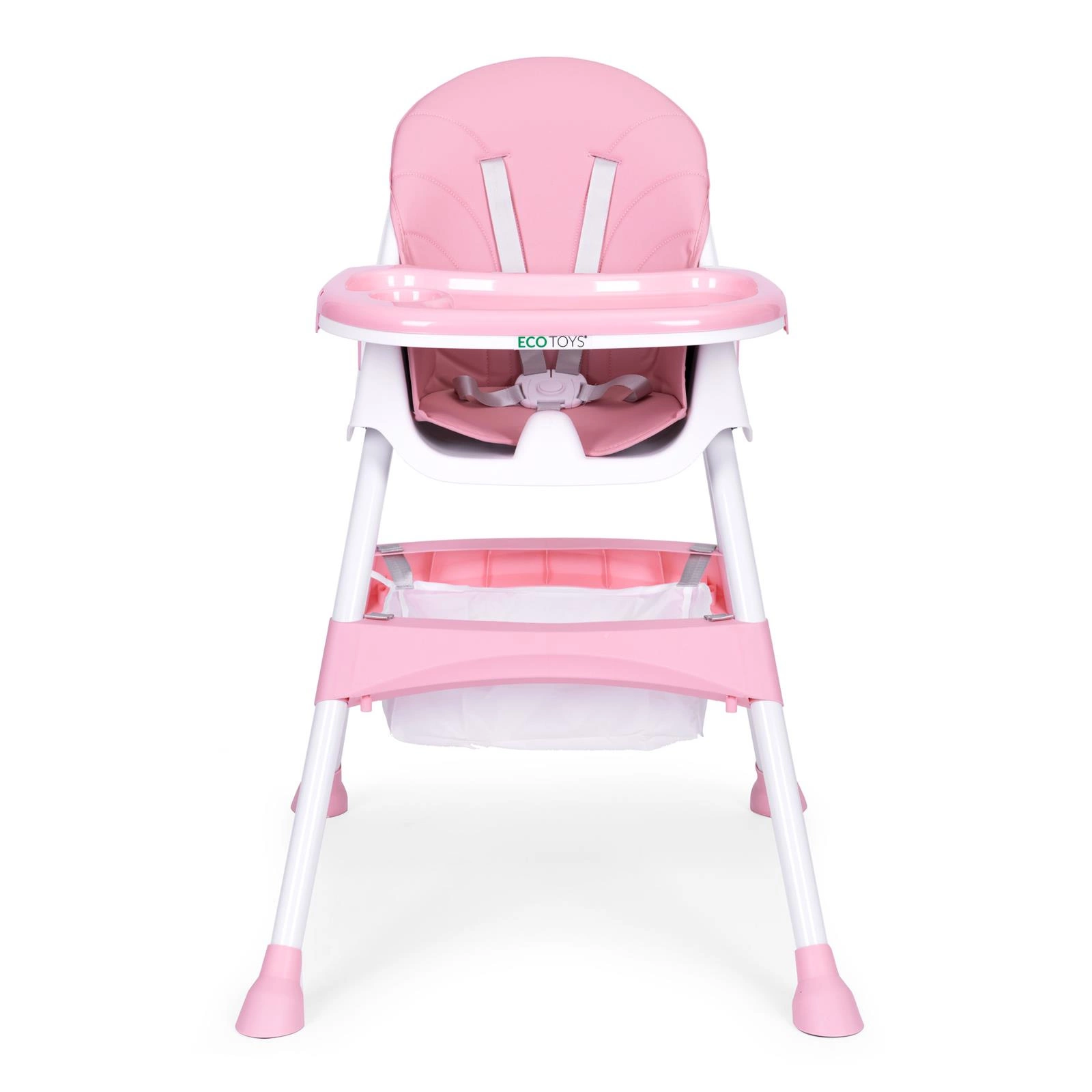 Fotelik krzesełko do karmienia dzieci tacka kosz 5 punktowe pasy różowy ECOTOYS