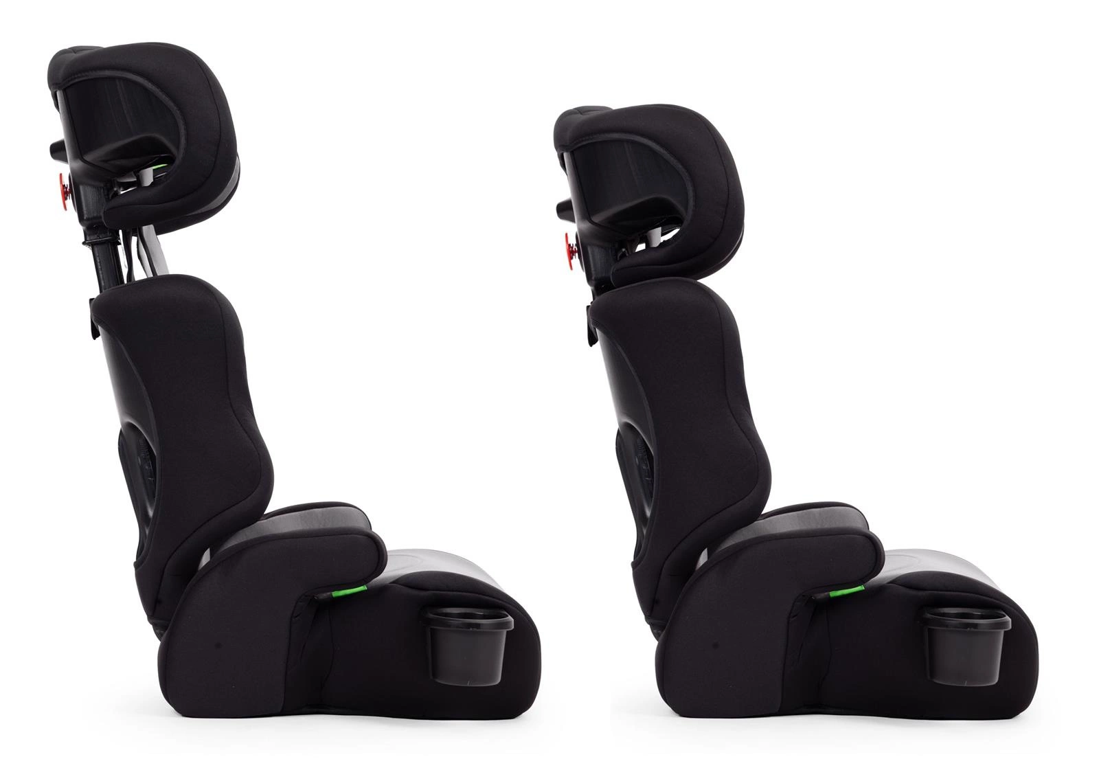 Umieszczony z tyłu zagłówka przycisk umożliwia płynną regulację wysokości oparcia – wystarczy jedno naciśnięcie, aby dostosować je do aktualnego wzrostu dziecka. Odpowiednio ustawione oparcie zapewnia bezpieczeństwo, stabilne podparcie oraz właściwą pozycję ciała nawet podczas dłuższych podróży.