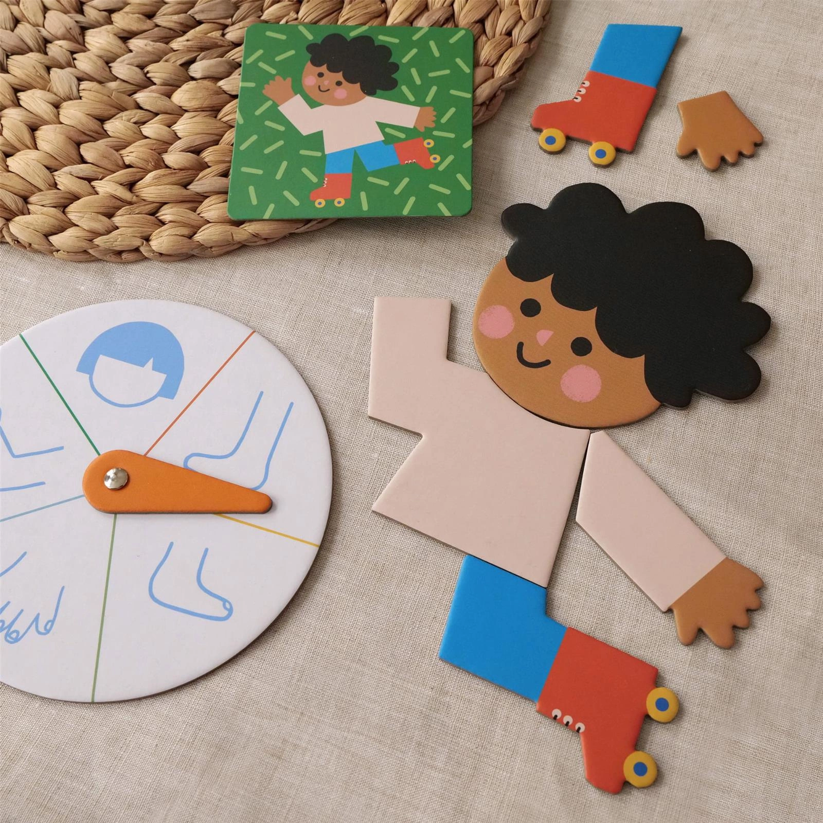Gra posiada proste zasady, które łatwo wytłumaczyć dziecku. Gracze wybierają kartę z wizerunkiem dziecka oraz biorą odpowiadające mu żetony w kształcie ręki, nogi itd. Następnie kręcą załączonym kołem i losują część ciała, którą należy nazwać i wskazać na swoim ciele. Po udzieleniu właściwej odpowiedzi, można uzupełnić wybrany na początku gry wzór żetonem w odpowiednim kształcie.