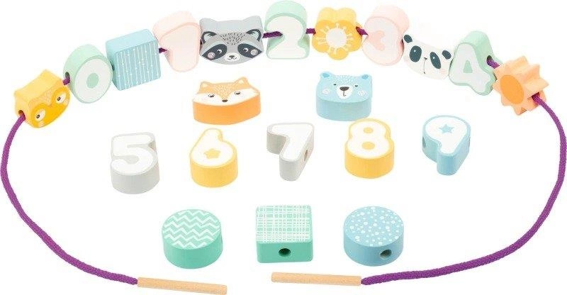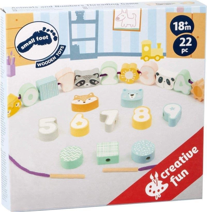 Gra edukacyjna Pastelowe liczby i zwierzaki Miś i przyjaciele 11475-Small Foot, nawlekanki, sznurowanie dla dzieci