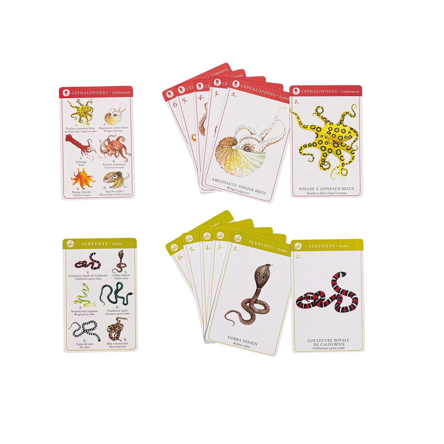Gra zawiera 7 rodzin: kotowate, głowonogi, żukowate, rekiny, węże,