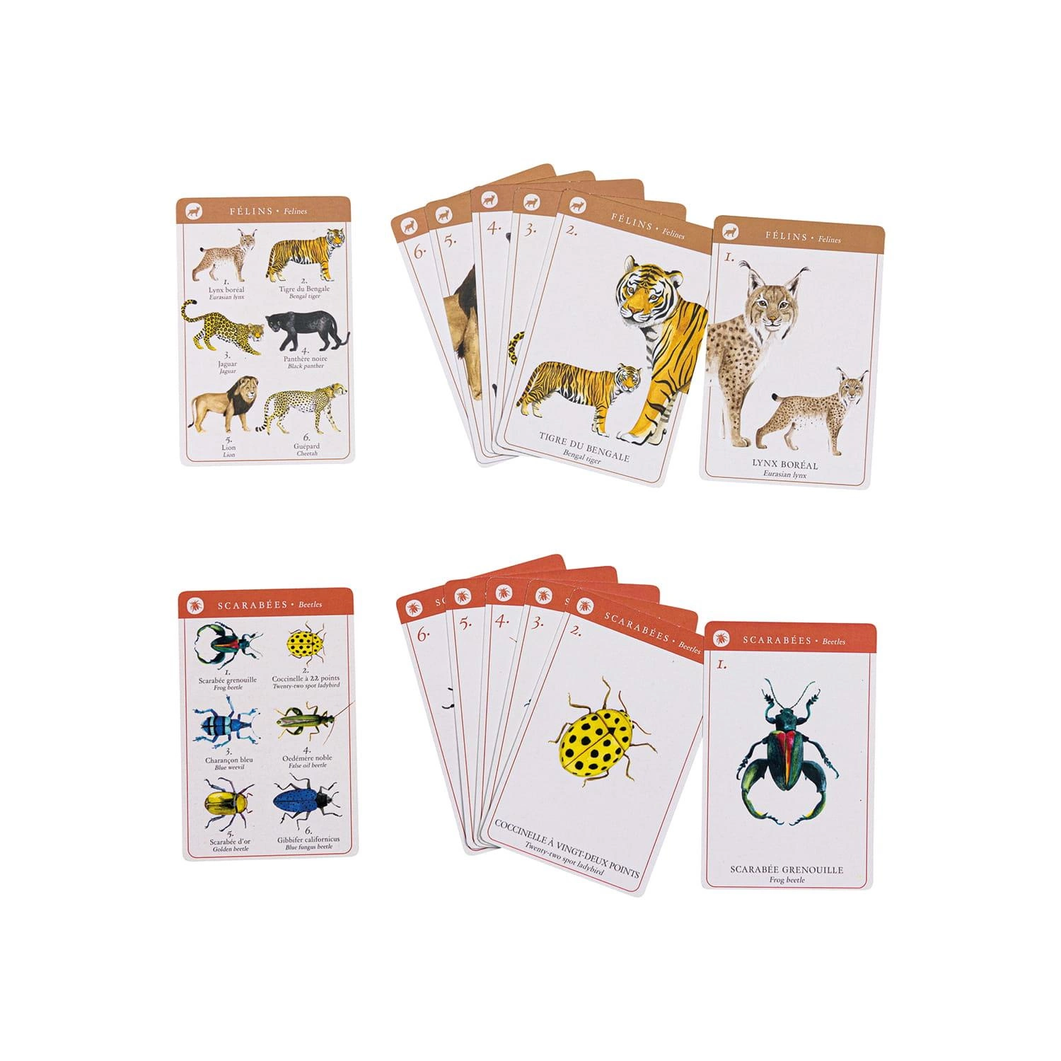 ptaki, ssaki naczelne i każda z nich składa się z 6 ponumerowanych kart