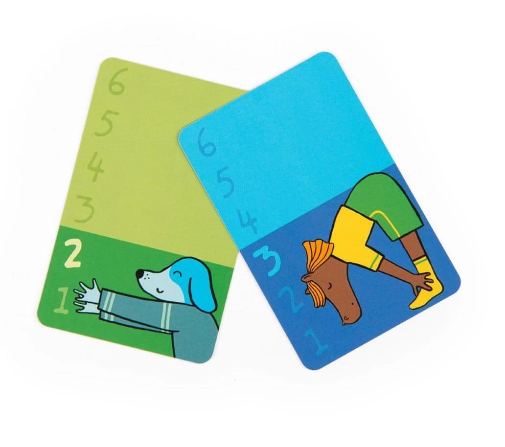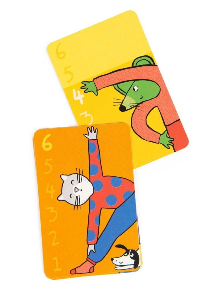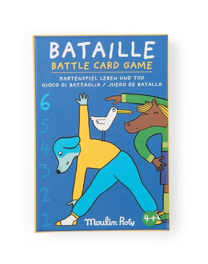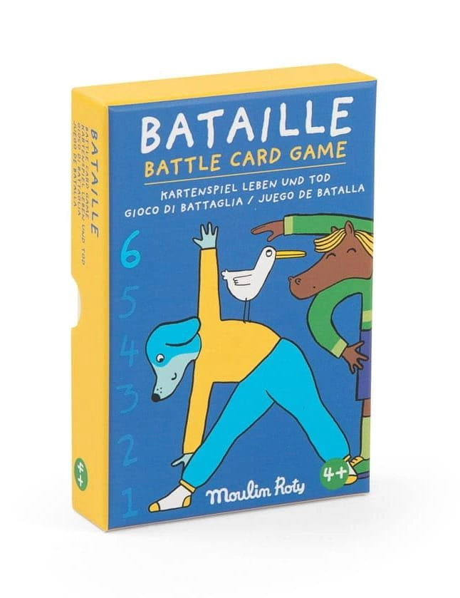 Klasyczna karciana gra w bitwę w odsłonie od Moulin Roty. Bohaterowie kolekcji Les Loufoques prezentują różne pozycje jogi na kolorowych kartach. Każda figura posiada odpowiednią liczbę punktów. Gracze dzielą karty między siebie. W każdej rundzie uczestnicy wykładają po jednej karcie na stół. Obie karty zdobywa gracz, posiadający silniejszą kartę. Jeśli położone karty mają tą samą wartość, rozpoczyna się bitwa! Gracze kładą na swoich kartach po jednej zakrytej, a następnie po jednej odkrytej karcie. Osoba z mocniejszą kartą zgarnia całą pulę!