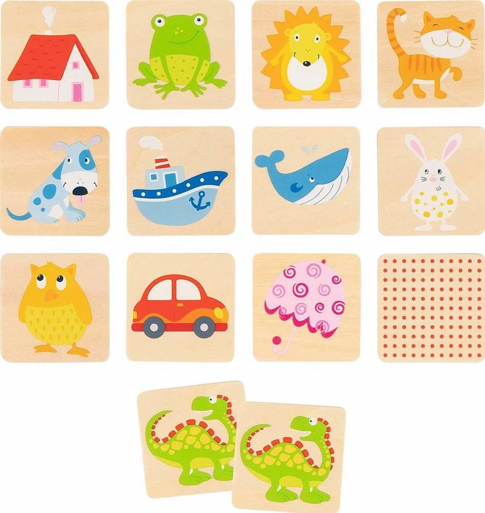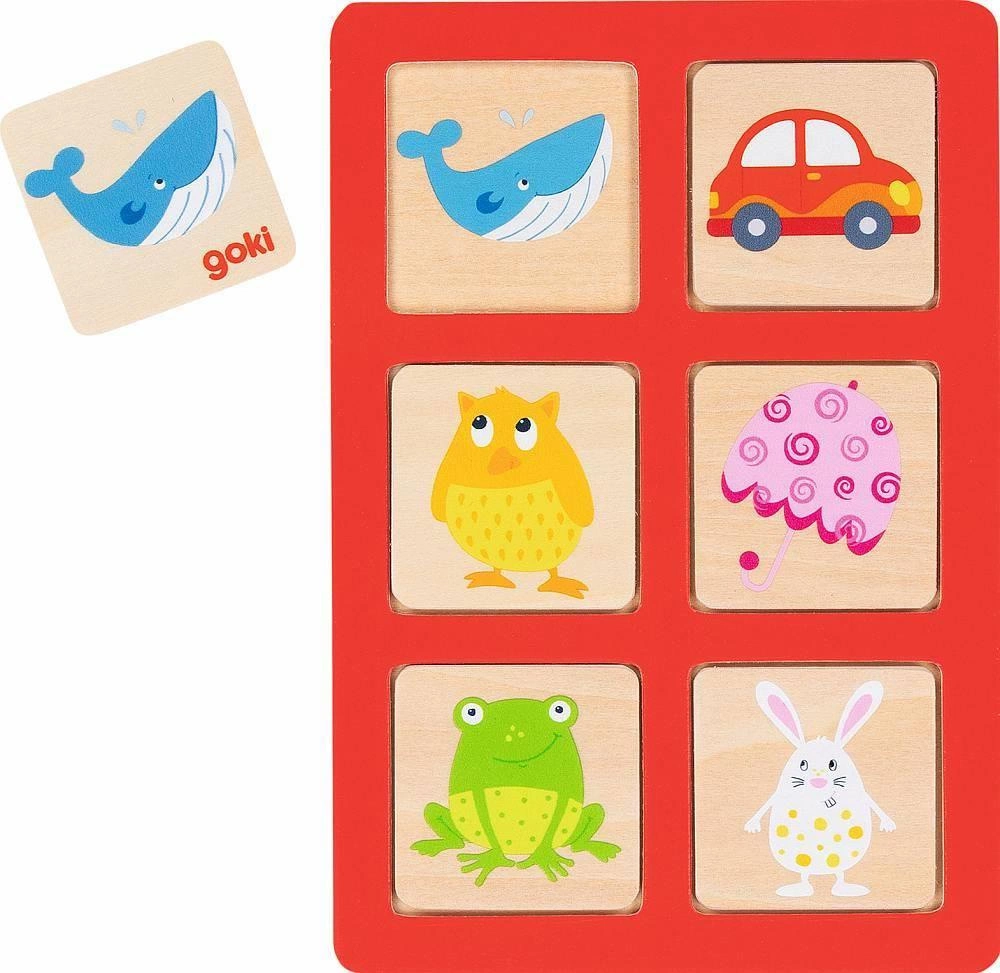 Gry pamięciowe Memo i Lotto, pozwalają maluchom poznawać świat i co dzień uczyć się czegoś nowego, rozwijają zdolność zapamiętywania i koncentrację. Gra drewniana Goki, składa się z określonej liczby par pasujących do siebie obrazków. Rozgrywka jest dość prosta, wystarczy połączyć 24 drewniane karty, przedstawiające różnego rodzaju zwierzątka oraz rzeczy z podstawą.