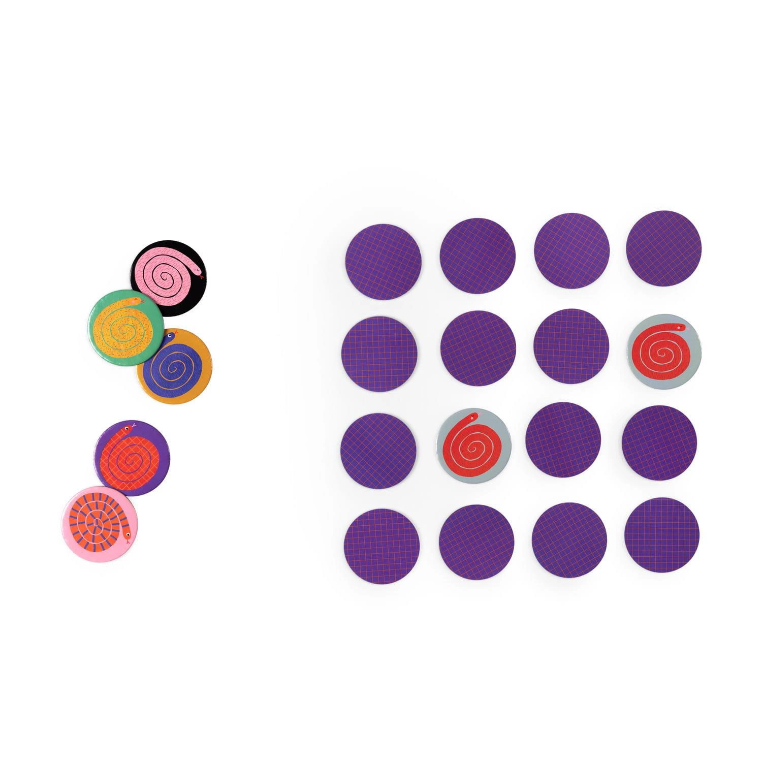 Klasyczna gra Memory w nowej odsłonie z kolekcji Les Toupitis. Celem rozgrywki jest odnalezienie jak największej ilości par. Zadanie nie jest łatwe, ponieważ na żetonach znajdują się ilustracje z różnokolorowymi wężami, różniącymi się szczegółami (np. kolorem tła lub wzorem na zwierzęciu). Gracze na zmianę odkrywają po 2 żetony. Jeśli uda się odnaleźć parę, gracz zabiera oba obrazki i może spróbować szczęścia ponownie. W razie pomyłki kolejka przechodzi na następną osobę.